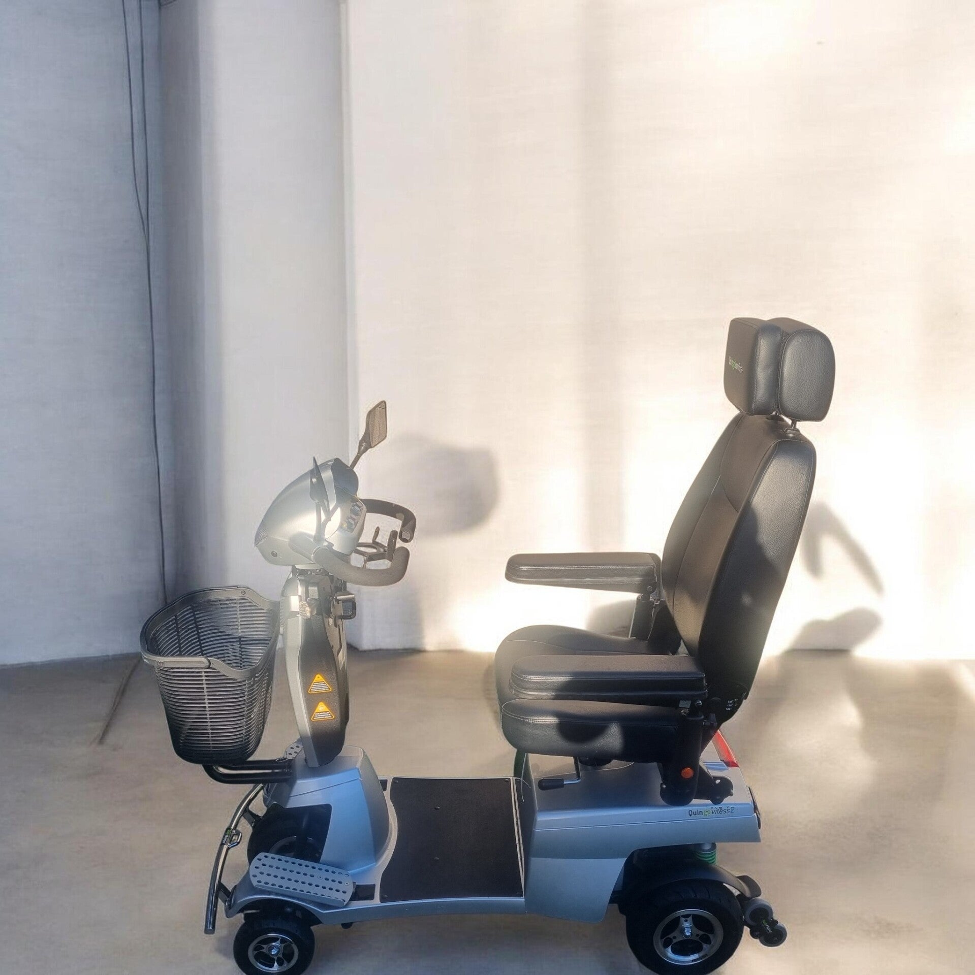 The stylish Quingo Vitess 2, like all Quingo’s in the range, comes with Quintell 5 wheel stability system. Not only is it stylish, but offers unrivalled luxury and range. It is powerful, travelling up to 8 mph, making it a road legal model and the perfect mobility solution for more hilly terrain. It also has a speed limiter restricting it to 4 mph so it can be used on the pavement too. Digital dash, superior lighting, deluxe ergonomic seat make the Quingo Vitess 2 one of our most popular models.